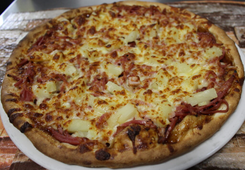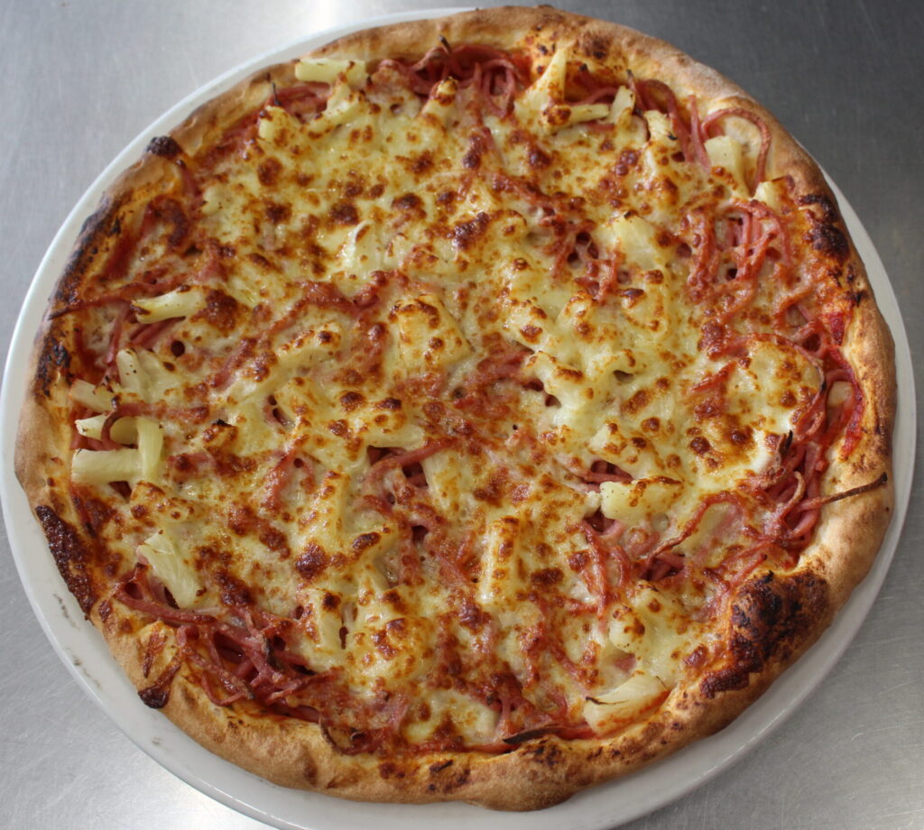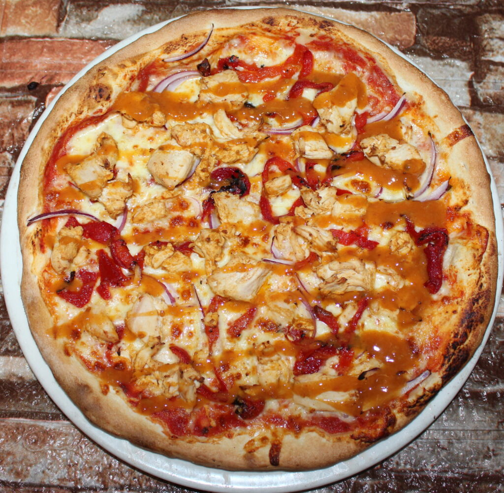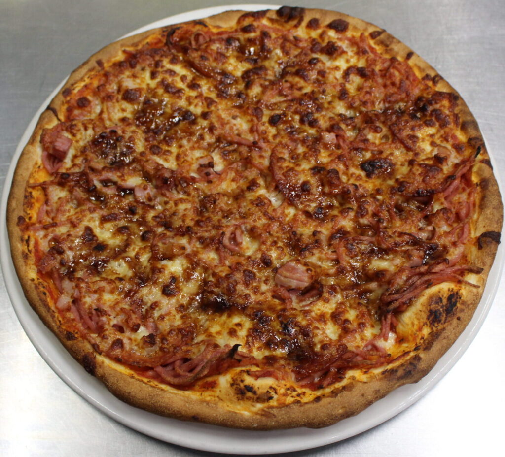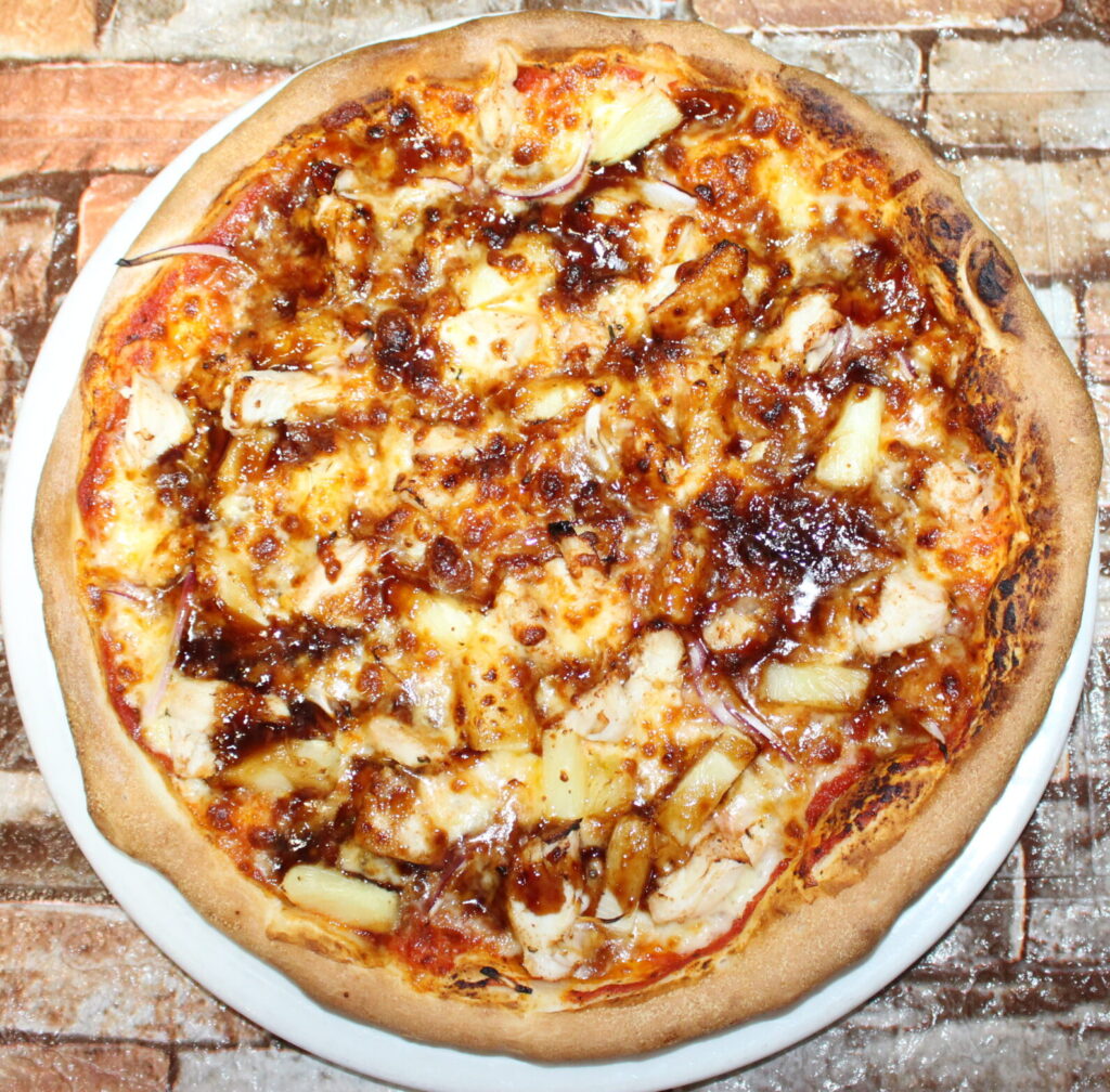BBQ Sauce, Mozzarella, Freshly Cooked Chicken Breast, Spanish Onion, Pineapple.