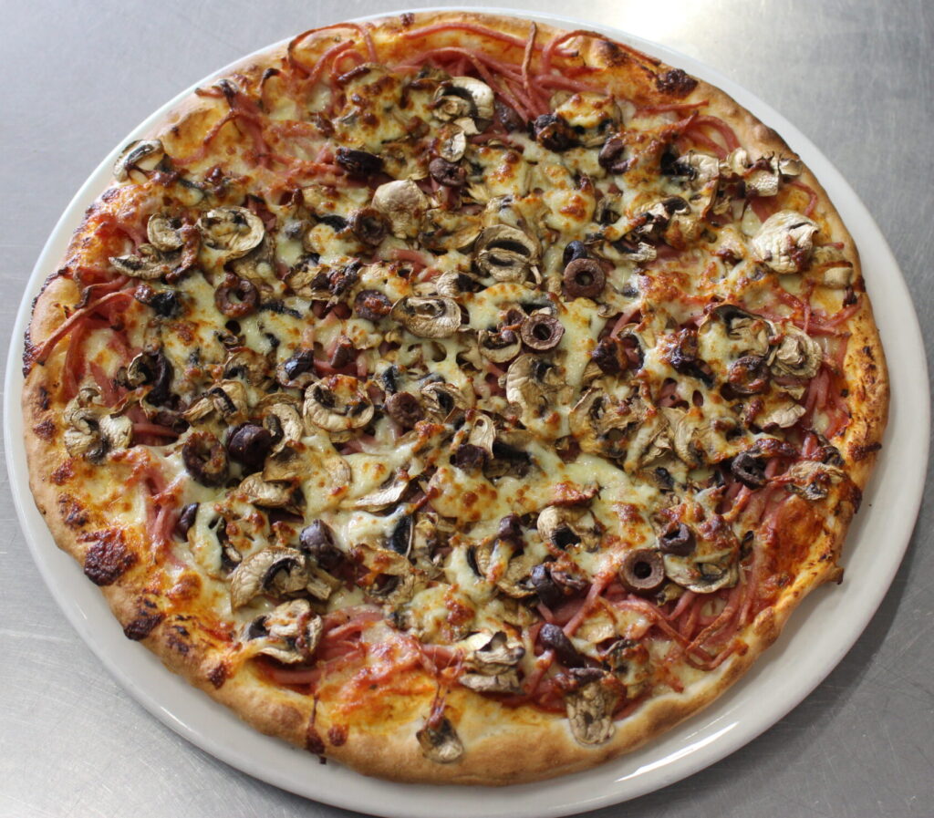 Tomato, Mozzarella, Ham, Mushroom, Olive, (Anchovies Optional)