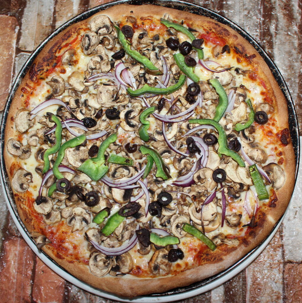 Tomato, Mozzarella, Mushroom, Spanish onion, Capsicum, Olive