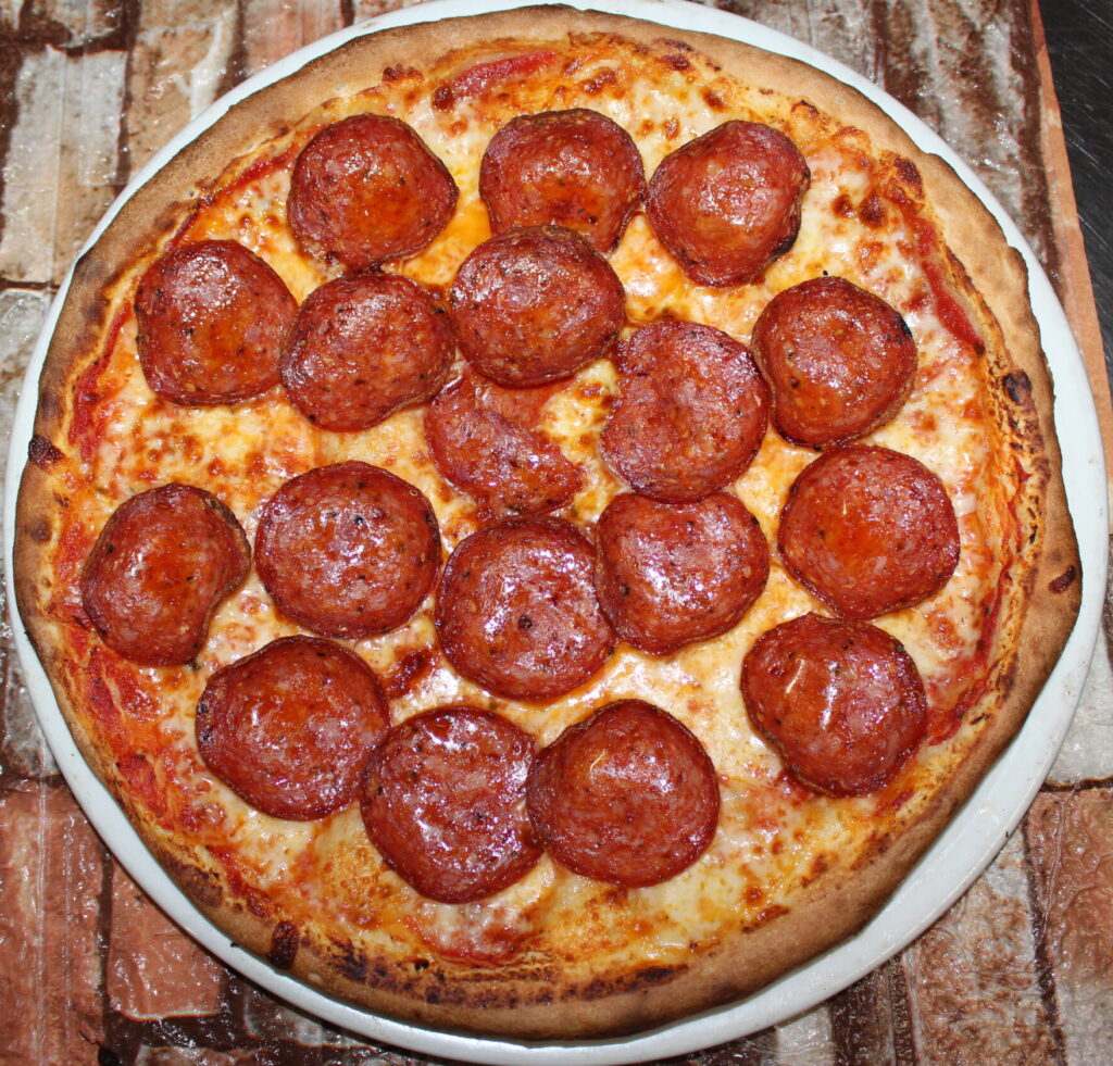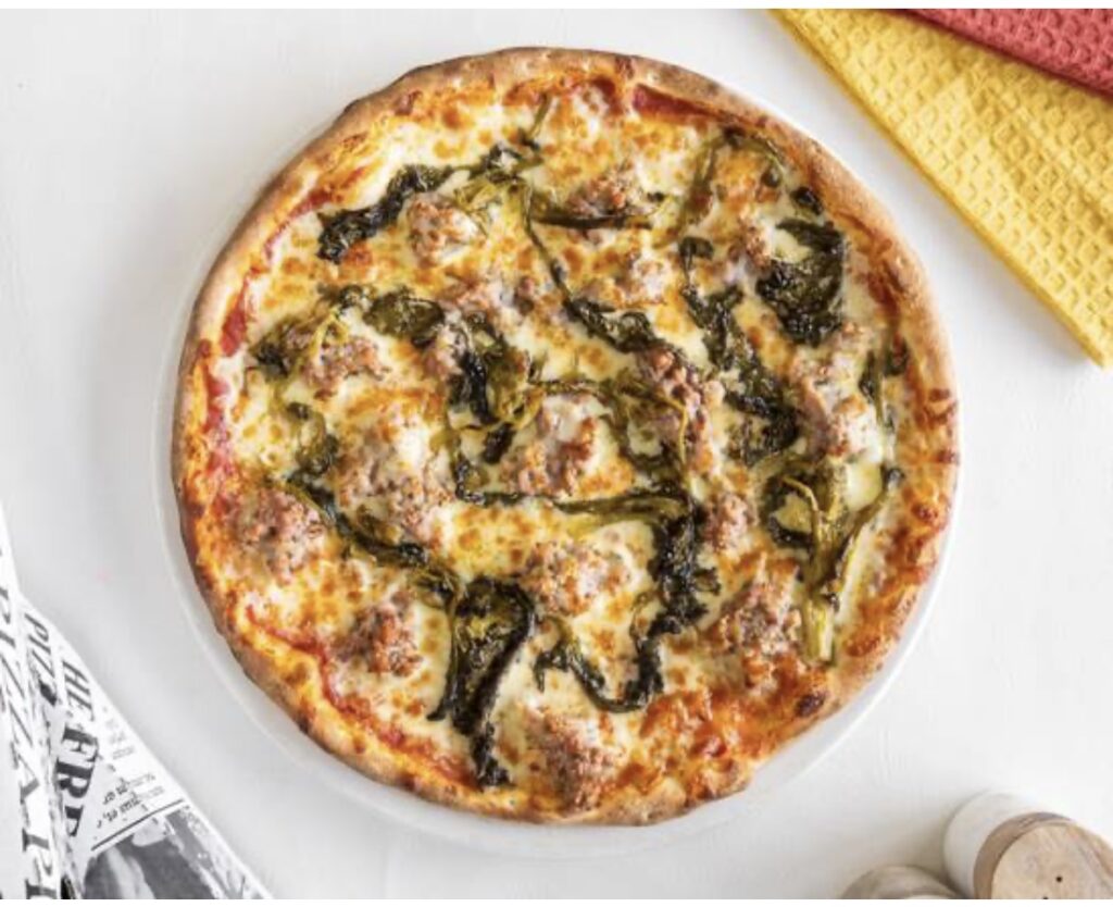 Tomato, Mozzarella,italian house made pork sausage and Italian rappa